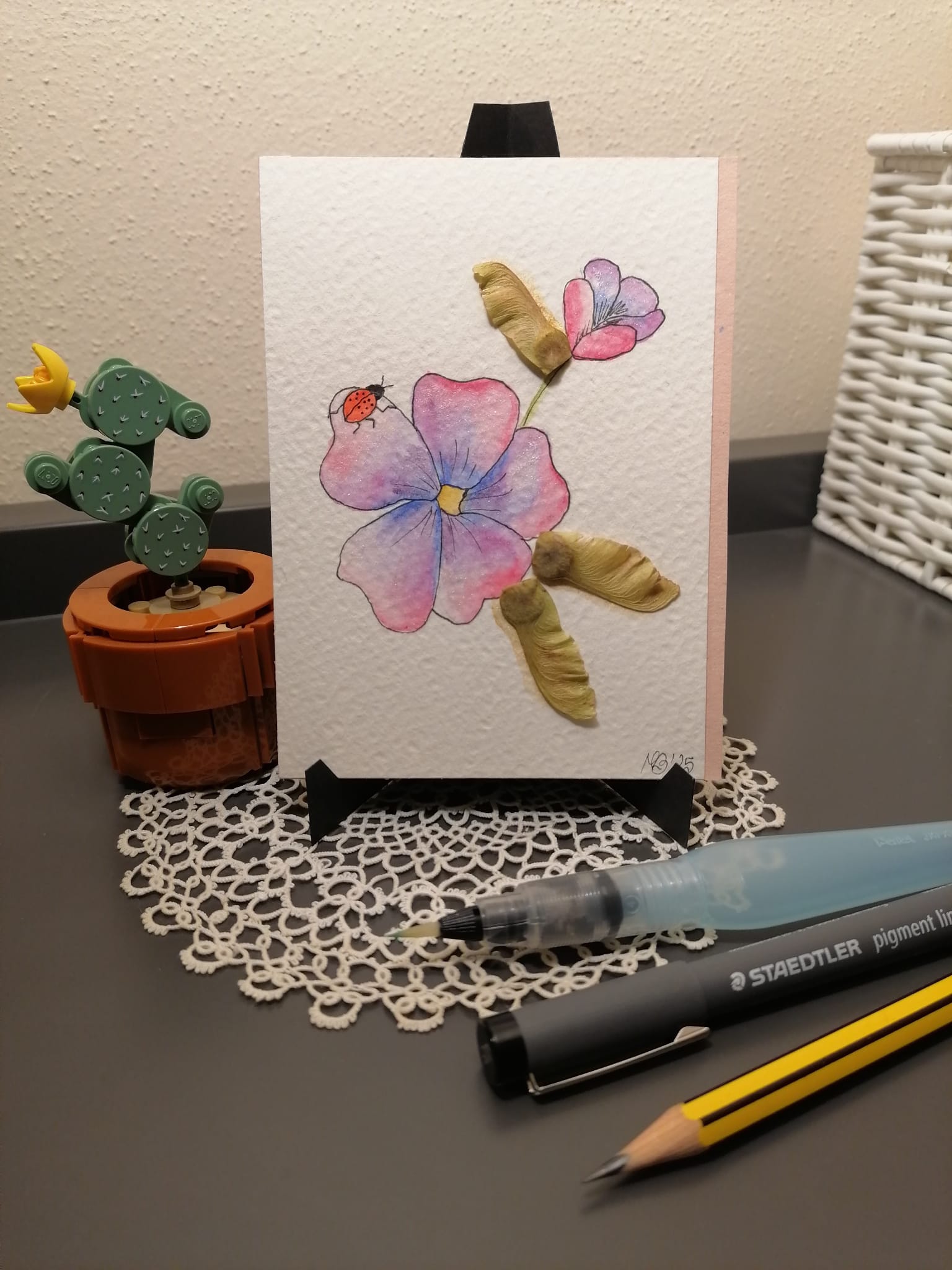 Biglietto 9x12,5 cm con espositore in cartoncino nero
