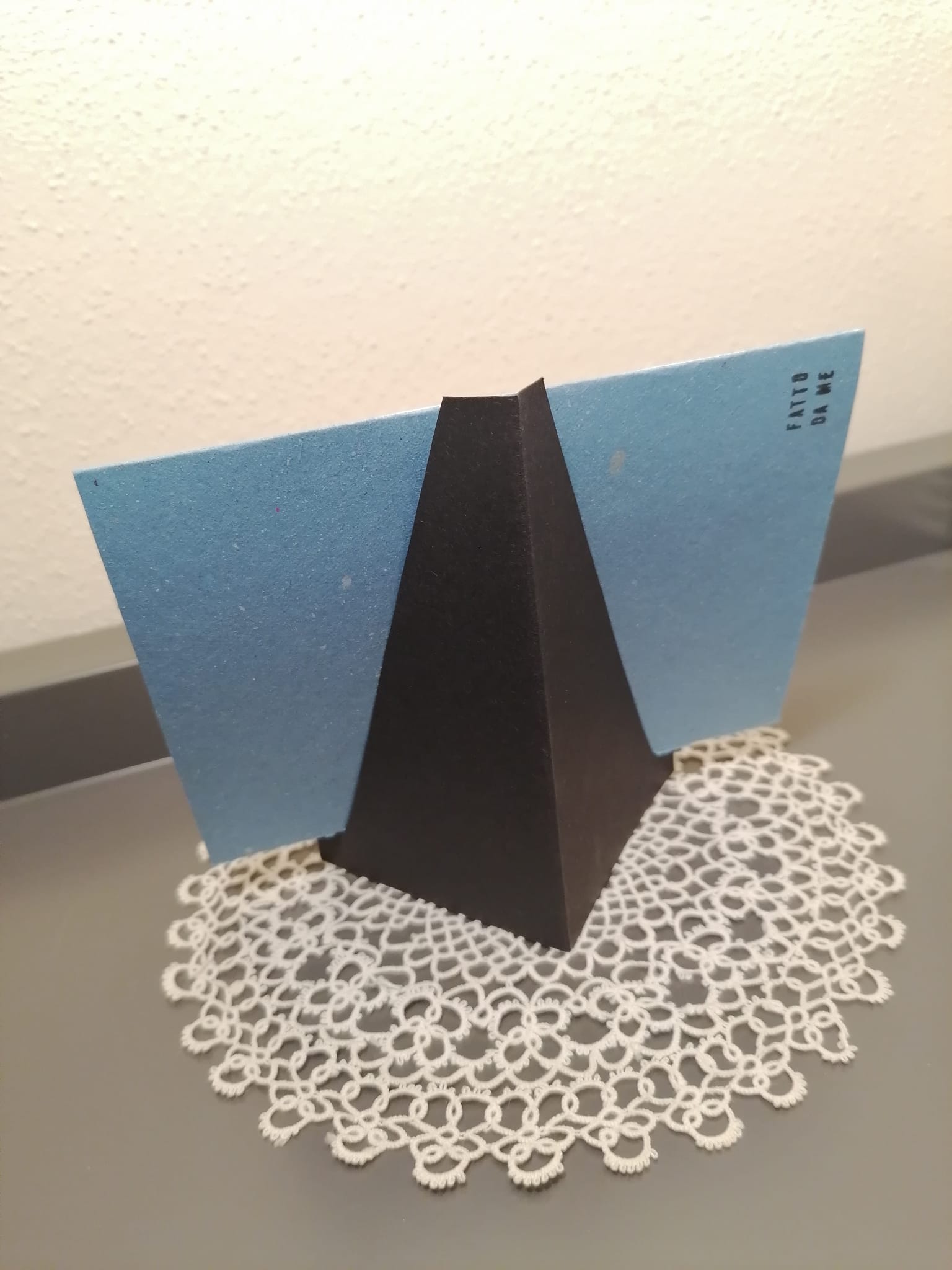 Biglietto 9x12,5 cm con espositore in cartoncino nero